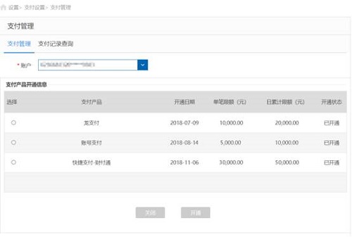 2.您可在该页面切换储蓄卡账户,选择“账号支付”,点击“关闭”。