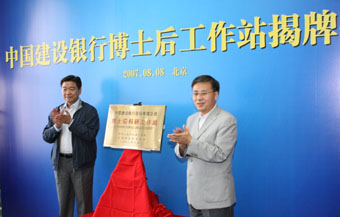 8月8日,郭树清董事长、张建国行长为中国建设银行博士后工作站揭牌。罗哲夫副行长主持揭牌仪式。监事长谢渡扬、首席风险官朱小黄出席仪式。全国博士后管委会办公室副主任、中国博士后科学基金会秘书长庄子健,中国人民大学副校长、博士生导师陈雨露,北京大学教授、博士生导师曹凤岐应邀出席揭牌仪式并发表热情洋溢的讲话。