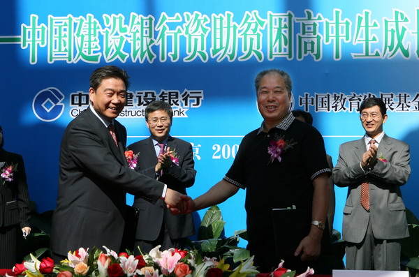 中国建设银行行长张建国与中国教育发展基金会理事长张保庆签署了捐赠协议。