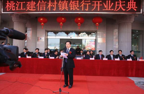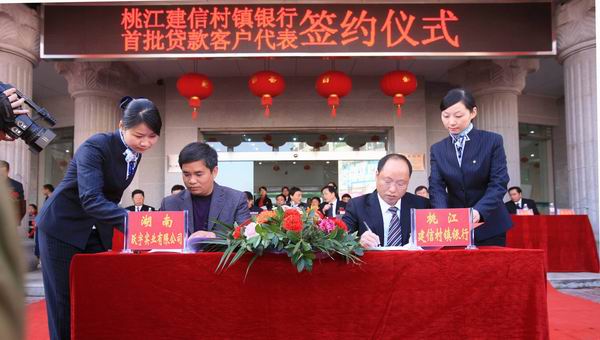 12月9日,中国建设银行发起设立的首家村镇银行—湖南桃江建信村镇银行股份有限公司正式开业。湖南省人民政府副省长徐明华、中国建设银行副行长朱小黄及益阳市委、市政府等有关领导,人民银行、省银监局有关领导等出席了开业典礼。