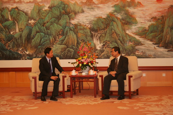 天津市副市长崔津渡与中国建设银行副行长陈佐夫会谈。