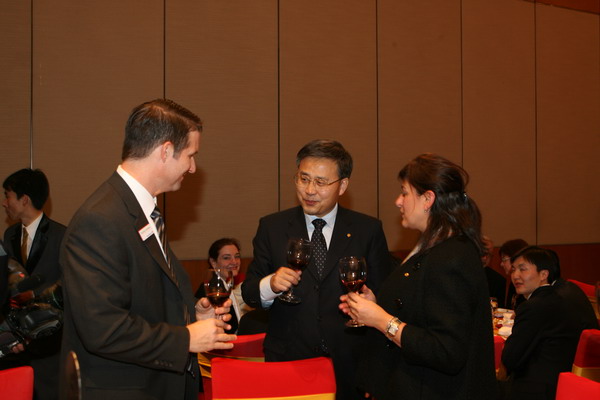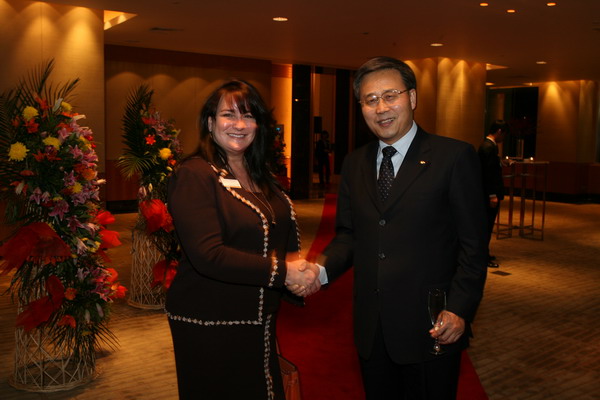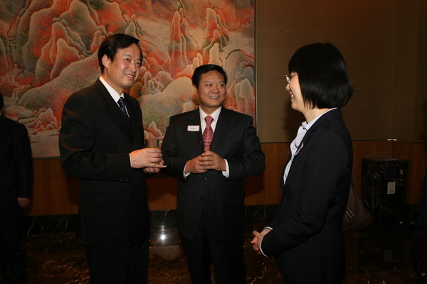 中国建设银行副行长陈佐夫与美国银行专家Garrie先生亲切交谈。