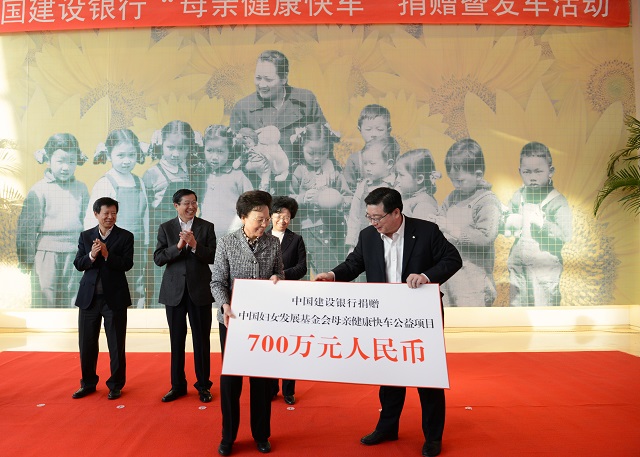 2014年12月2日下午,中国建设银行捐赠700万元购置的45辆“母亲健康快车”在中国妇女儿童博物馆发车,开向西部五省区。全国妇联党组书记、副主席、书记处第一书记宋秀岩,全国妇联原党组书记、副主席、书记处第一书记、中国妇女发展基金会理事长黄晴宜,中国妇女发展基金会副理事长兼秘书长秦国英,中国建设银行股份有限公司董事长王洪章,监事长郭友、副行长朱洪波出席活动。出席活动的还有中国建设银行的员工代表、受助人代表以及基层医院项目执行人代表。会议由中国妇女发展基金会副理事长兼秘书长秦国英主持。