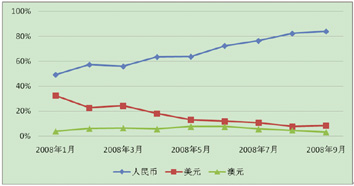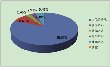 ▼ 图2 2008年第三季度银行理财产品币种