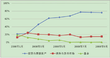▼ 图8 2008年人民币理财产品投资领域变化