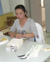 李宁宁在当地成为金融系统的“名人”,是因为去年参加了CCTV的“劳动榜样”节目,并最终成为“点钞技能”的状元。在问及她这次比赛时,李宁宁平静地说:“05年参加完省里的比赛后,就直接去报名参加了,因为参赛的人各行各业都有,所以比赛时也没什么压力。”就是这个海选时只想着能进决赛就行的普通会计,最终成为了全国的“点钞状元”。