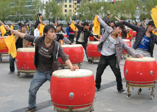 县城中心的锦源广场上,县文化馆正在组织一场声势浩大的《楚汉雄风》打击乐演出排练,这是为陕西省交警运动会开幕式准备的节目。待鼓声停歇,吕朝宾、刘来有便会站在鼓上引吭而歌。