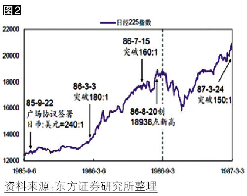 亚洲的第二个股指期货——日经225期货在新加坡交易所上市。从1985年9月22日广场协议签署开始,日本历经了一场包含股市、汇市、房市的资产快速狂飙。广场协议签署时隔半年,1986年3月3日,日经225指数从12755点上涨到13757点。到了7月15日,股指期货上市前一个半月,日经225 指数上涨到17639点,涨幅已经达到38%。股指期货的上市更是加速推升日股的涨势。86年8月20日,日经225指数创下18936点的新高。有趣的是,9月3日股指期货上市后,指数开始回调,反而让前波的高点成为中期头部。休整2个月后,日股又恢复多头行情。87年1月16日打破股指期货上市时的高点。(见图2)