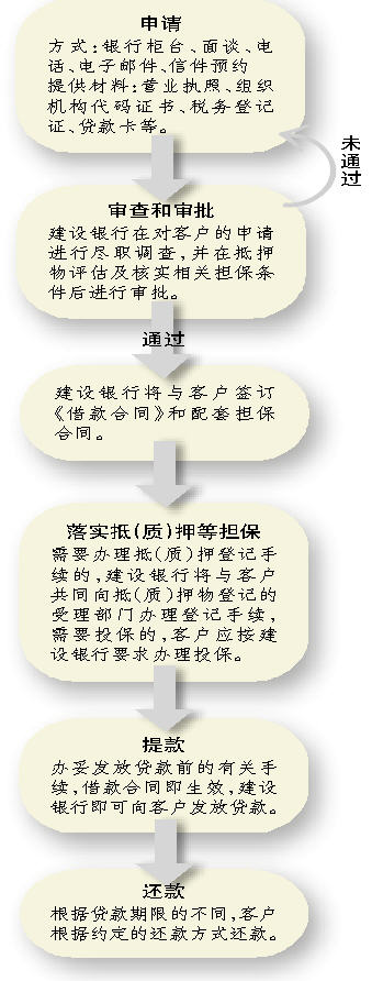 “成长之路”品牌下小企业一般授信业务增加了“评级”的环节,主要业务流程为:客户申请-评级-审批-签订贷款合同-落实贷款条件-办理抵(质)押手续-发放贷款。不同产品在具体办理流程上也有各自的特点。
