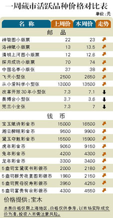4月中旬的市场亮点集中在“庚申猴”邮票和彩金银币上,随着价格的不断上扬,前期邮币市场的调整局面已改观。其价格从7300元涨幅接近18%,