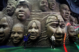 上海世博会开幕已经一个多月,日均入园最高已经突破40万人次。世博是世界文明的集中体现,也同时包容着世界万象。不同肤色的人们从世界各个角落赶来相聚,不同样貌的面孔在世博相映成趣。西班牙馆里一个黑发宝宝痴痴地望着大婴儿“米格林宝宝”、黄色面孔的小女孩和黑色面孔的中东妇女“合影”、非洲馆里的面孔墙与游客的面孔……