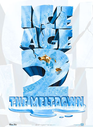 图形化文字型是建立在文字框架基础上的,是为了观其形、知其意,让文字传达一定的剧情剧意,更成为整个画面艺术魅力展现的一个中心。以文字为主体的电影海报,字体设计成为重点,图像往往通过色彩反差来衬托文字。如《冰河世纪2》的海报中,标题被设计成蓝色的冰块状,占据整个幅面,小主角点缀在上面,字与图融为一体,寓意一目了然。