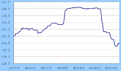 周初,受爱尔兰债务危机支撑,美元指数上行至79.46;之后爱尔兰将获援助的消息缓解了投资者的担忧,美元指数连跌三日,周五报收78.51