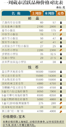 12月上旬,市场出现了调整表现,但热点并不匮乏,成交依然活跃,人气也维持在高涨水平。邮市:随着大量邮票而回升,短线获利筹码丰厚,兑现盘涌出导致不少品种价格下调。如小版张中的羊年中国名亭行书分别下滑到275元、76元和70元,梅兰竹菊无齿小版张也下沉至340元。不过,庚申猴邮票创出11000元新高。币市:金银币整理格局依旧,价格变化不大,惟交易凝滞。流通纪念币补涨明显,早期发行的建行西藏熊猫朱德分别上扬到3380元、330元、135元和39元。此外,第三版人民币买气上升,部分低价品种有10─15%涨幅。