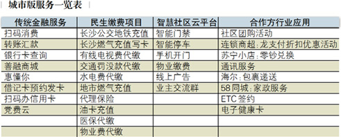 目前已叠加服务场景十个:打造金湘通+联通、金湘通+移动、金湘通+电信、金湘通+电力局、金湘通+卫生院、金湘通+连锁商超、金湘通+电商、金湘通+中石化、金湘通+58农服、金湘通+智慧政务十类非金融服务场景。