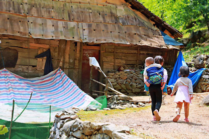走访过程中,带路的孩子一次次地刷新了我们对大山的印象,更坚定了我们走进大山走近这些孩子的信念。孩子们说,你看,家就在那里,在山脚下……然后,我们爬了半个多小时才到那个所谓的家:石头垫起的地基,木板撑起的房体,破烂的布片和糊在窗上的报纸,每一处都昭示着这个所谓的家经受了多少风雨的摧残。孩子们还说,我带你们去我邻居家,很近,就在对面山……于是,我们攀了一座山,从这个山脚下的家到那个山脚下所谓的邻居。孩子们却很兴奋,即使这个邻居很远,但他们却像看到了很亲很近的人,原来,爬山两个小时和邻居的孩子玩耍已是这些孩子的日常。这隔着千山万水也阻不断的发小情,该是多少近在咫尺的邻居们所求不得的啊?