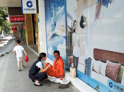 突然,她瞥见门口好像有个身影倒下。她急忙跑出去一看,原来是一名市政工人受不住酷暑,刚吃过午饭,想找个阴凉的地方稍作休息,因为一身的汗臭味,他不敢进入营业厅,便选择在银行门口躺下。