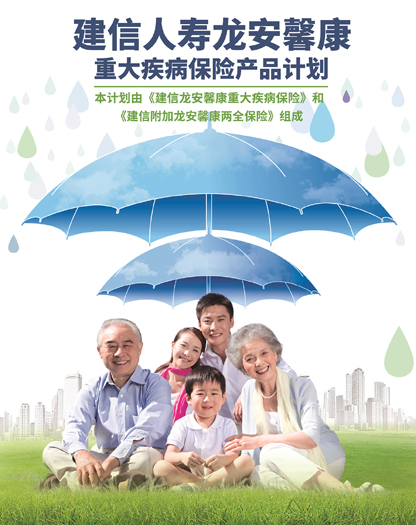 建信人寿龙安馨康重大疾病保险产品计划,晴天时为您和家人遮阳,雨天时为您和家人挡雨,前进路上,我们一路与您相随。