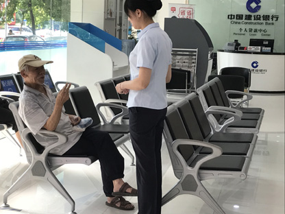 今天,老人一如既往地来汇款,不同的是老人手上提着药。柳颖早已把这位老人当作自己的长辈,遇见总是亲切交谈一番。看到老人手里的药,柳颖急忙搀扶老人坐下,为老人端上一杯水,关切询问。老人家笑了笑,拍拍柳颖的手,反过来安慰她:“心脏的老毛病,不用担心,我没事。你是个善良的孩子,每次来建行看到你们,我都很开心。”