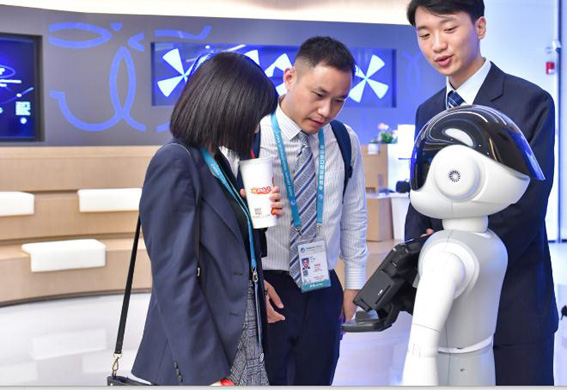今年正值新中国成立70周年、建党98周年,借助VR技术构建的生动数字党建课堂,就可直接身临其境感受红色教育与信仰的力量。在建行大学展区,智慧教育机器人“小微老师”无疑是最受欢迎的萌宠。建行大学携手人工智能,展现人脸识别、智能答疑、自我学习等新技术,打破教学时空限制,实现课程点播功能,让参观者亲身感受5G网络带来的共享空间概念。
