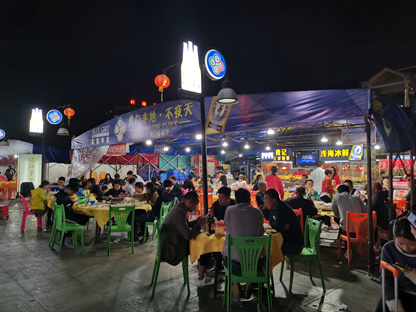 凌晨1:00,缭绕夜色中的东莞,正展现出不一样的面孔。虎门“不夜天”美食广场一片热闹非凡、人声鼎沸。习惯夜生活的东莞人,卸下白天的紧张忙碌,在呼朋唤友中放松着身心。“不夜天”美食广场地处广东省东莞市虎门镇中心,是东莞餐饮行业的一张名片。今年以来,东莞市政府大力推进“湾区都市,品质东莞”建设,配套出台多项政策措施,积极推进夜间商业的建设,推动打造多个夜间经济市场,活跃夜间市场和夜间消费。当前,东莞夜经济活跃度排名全国第二。东莞分行紧紧抓住这一有利机遇,积极响应“善建者行,乐建其成”活跃夜间经济综合方案,迅速行动,积极拓展夜间商业街,致力打造夜间经济商圈,更好地满足人民群众对美好生活的向往,体现出新金融服务的普惠性、科技性。在同业中走出了一条金融服务“差异化”的新路子。