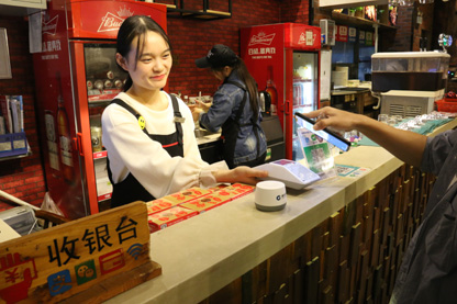 “来,我的建行手机银行上就有龙支付,这顿可吃得太实惠了,过几天我还来!”一名男士在东莞虎门“不夜天”球记海鲜酒楼收银处拿出手机点开龙支付,高兴地把餐单结了。