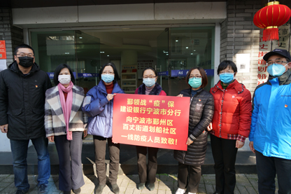 本报讯 2月20日下午,在宁波市鄞州区姜山镇东光村及百丈街道划船社区,宁波市分行举办了简短的“鄞领战’疫’保”保险捐赠仪式。在全国打响新冠肺炎疫情阻击战之际,一大批坚守在抗疫一线的劳动者发挥着重要的支持保障作用。为致敬这些“最美劳动者”,切实承担起国有大行的政治责任与社会担当,宁波市分行在免费赠送驰援湖北抗疫医护人员专属保险的基础上,又向乡村、社区等一线抗疫人员定向捐赠“鄞领战‘疫’保”保险。该保险的保障对象是宁波市鄞州区抗疫一线的社工、村干部以及党员志愿者,活动当天已有6000多位一线抗疫人员获赠。