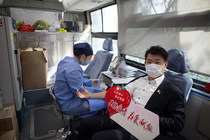 3月12日上午9点半,上海陆家嘴金融城已经开始了一天的忙碌。上海市分行门口,一辆爱心献血车格外醒目,车外人们戴着口罩排队,扫描二维码登记报名后逐一进行血液检测,符合条件的人员开始现场献血。在短短3个小时内,完成28位员工体检,最后符合条件的21位员工完成了献血。