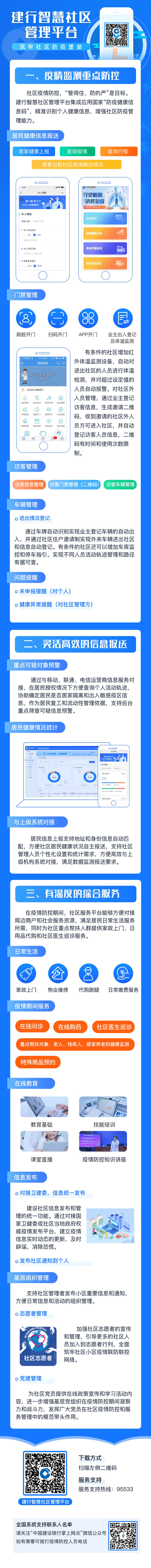 “建行智慧社区管理平台”是建设银行针对疫情防控需要,依托建设银行雄厚的大数据开发能力,研究推出的一款满足社区、企事业单位网格化管理需要的应用平台,集动态、高效、精确、扁平化数据共享于一身,通过数据采集分析利用,可以有效提高疫情防控数字化水平,减轻社区和企事业单位工作强度,助力提升社会化治理水平。