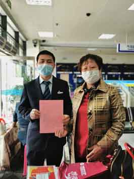 次日,网点还是人头攒动,一时难以双人上门核实。但是想到对客户的承诺,想到卧床待治的老人,樊行长和柜员李伊凡决定把午饭时间腾出来,带着文件资料快速前往荆女士家中。在核实情况真实无误后,樊永岗向荆女士详细解释了业务的代办流程和需要提供的材料,并告知荆女士当天就可前往网点办理。为了不影响营业,两人又匆匆赶回网点。
