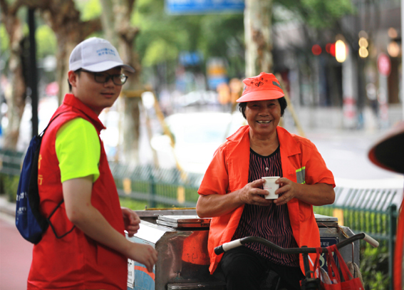 浙江省温州分行延伸“劳动者港湾”服务,身穿红马甲的志愿者们为户外劳动者和路上行人送上清凉解暑的伏茶和银耳汤,关怀城市守护者和建设者。■ 彭荷叶/摄