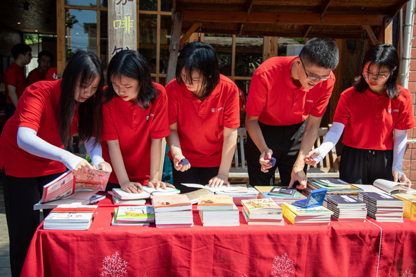 揭牌仪式上,厦门市集美支行代表厦门市分行分校向港头公益图书馆捐赠了征集来的近百本适合小朋友的绘本、百科等图书。分校的下乡学子们还聆听了颜先生介绍图书馆的建馆历史,体验了培养对知识敬畏、对书籍珍惜的“端水静心”进馆仪式,并共同将捐赠的图书归类上架。
