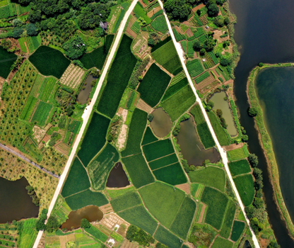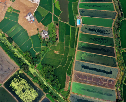 这是溧阳南渡镇千亩稻田航拍的画面。这里河荡纵横,良田沃土,得江南山水之灵气,绿色农业生态发展。 绿油油的水稻田,在高空俯瞰,犹如一张张色彩斑斓的邮票,又像油画的调色板,把大地装扮得美丽富饶。