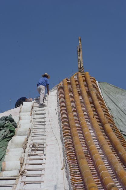 古建的一砖一瓦都是不简单的,像故宫的每一块琉璃瓦都有“身份证”,窑户是谁,配色是谁,烧制是谁,小小的瓦片背面写着四个匠人的名字,还用了满汉两种文字。当时只是一种责任到人的制度,在今天看来,则是非常了不起的遗产记录。“在古建中,琉璃瓦脱釉的现象是很普遍的,但脱釉后如何复釉?我们的修复理念是尽可能用老瓦,少用新瓦。只要胎没事,裂了可以拿胶粘。新瓦的替换也是有讲究的,主要集中放在建筑屋顶的后坡,尽可能地确保不破坏建筑的原汁原味。”