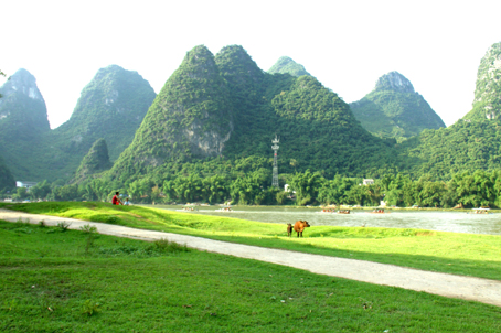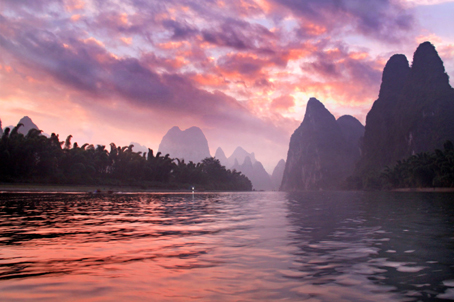它总是带着惊人的美丽,像在天边,既亲切又遥远,吸引着我一次又一次前行。而乘一叶轻舟,深深呼吸漓江的气息,让缓缓的小船,承载着我,从杨堤到达兴坪。那份悠然遐逸怎能不让我着迷?