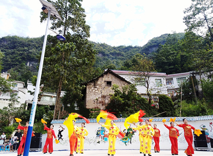 黔南州福泉市沙坪村村民庆祝建行捐赠的路灯竣工。