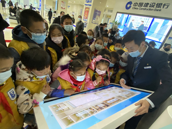 建行大学青海省分行分校与青海省分行团委联合开展“金智惠学·青葵乐堂”公益成长培养项目,打造流动的“裕农学堂”。图为藏族小朋友在百佳网点青海电力支行营业部参观。■ 青分/图文