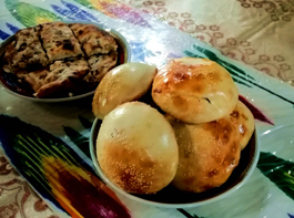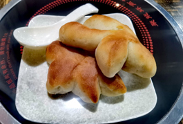 在喀什古城旅游区里有一家烤包子店,卖一种小烤包子,两块钱一个,很便宜,皮面上有清晰地攥出来的手指印,看着像是用手一把抓出来的,所以又叫“一把抓”。 和田的玉龙喀什河边有一家烤包子店,是我见过最大的烤包子店,以卖烤包子为主,也卖烤肉馕。他家的烤包子有大小两种,大的十元一个,小的五元一个。大的烤包子有碗口那么大,吃之前先发给你一把小刀,烤包子上来后,先把包子背面沾的盐泥粒刮掉,放在食碟里,底朝上,用小刀沿着边沿切开一圈,底盖就打开了,包子壳就像一个碗,里面盛着“一碗肉”。这种烤包子要是不用刀切开,根本无从下嘴,吃一个基本上就吃饱了。据说他们家每天要卖5000多个烤包子,烤包子一出炉,一堆人围上去抢,去晚了还吃不上呢。和田市还有一家卖烤全羊的店,他家做的烤包子也很好,不过人们都是奔着烤全羊去的,烤包子就变成了“副产品”,有点被冷落的感觉。