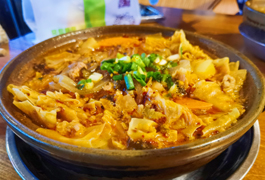 除了拌饭,石锅中鲜美的嫩豆腐汤也是一道风景。冬天用它炖汤才对味儿。肉块在热气腾腾的肉汤里咕嘟咕嘟地翻滚着,又有谁能抵挡得住这样的诱惑?