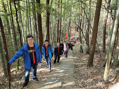 建行大学井冈山党性教育学院承办总行机关党员发展对象党性教育培训班,图为学员重走朱毛挑粮小道。■ 谢良明 /摄