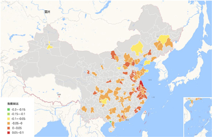 3 2020年全国百城租赁指数同比分布图