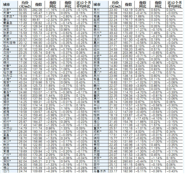 注:表格中为建设银行100城指数,带*为住建部试点城市