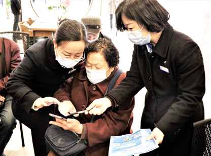 官渡支行承担着属地社保代发,日常到网点办理业务的老年人近7成,网点提出创新服务老年客户的“九点服务法”,即营业大厅大堂经理服务动作慢一点、语速缓一点、微笑多一点;柜台柜员做到声音大一点、提示多一点、服务暖一点;客户经理推荐产品做到收益稳一点、期限活一点、联系勤一点。此外,营业室还提出“五个一”服务:一杯热茶、一个口罩、一把伞套、一块毛巾、一盏明灯,同时增设银发服务人员,为老年客户群体提供热情细致周到的人性化服务。