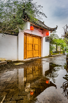 初秋的荷塘,几乎看不见荷花,那些曾经生机勃勃的荷叶,在午后的阳光里低头沉思。偶尔看见一条小巷,有些古色古香的感觉。