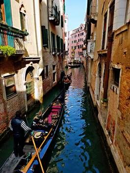 上万艘的贡多拉是水城里重要的交通工具,翩跹摇曳的小舟,将水城各个角落串联起来,跟随着贡多拉游弋在水城的各个水巷。穿过桥底,揭开这座城市的神秘面纱,一窥芳容。威尼斯外形像海豚,城市面积不到7.8平方公里,却由118个小岛组成,177条运河像蛛网一样密布其间,401座形态各异、风格不同的桥则将各个小岛连接成一块翡翠,镶嵌在这片海域上,有的庄重,有的小巧,有的似蜿蜒盘旋的飞龙,有的又似斑斓多姿的飞虹。其中最著名的是利亚德桥,大文豪莎士比亚的文学巨著《威尼斯商人》记述的就是发生在这里的故事。