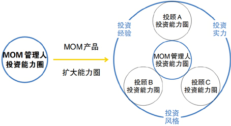 管理人中的管理人,manager of managers ,简称MOM。MOM既可以实现管理人大类资产配置的能力,又能发挥不同资产管理机构在特定领域的专业投资能力。基金管理人通过优中选优的方法,筛选投资顾问,让这些最顶尖的专业人士来管理资产,而自身则通过动态地跟踪、监督、管理投资顾问,及时调整资产配置获得投资收益。这种多方合作共同参与产品管理的资产配置模式,能够集合各方投资专长,显著提升管理人投资能力圈,为投资者提供更加优质和全面的服务。