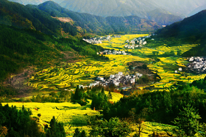 经过两天的跋涉,到达了最美乡村婺源。婺源江岭,10万亩梯田油菜花,与竞相绽放的桃花、白墙黛瓦的徽式建筑相影相衬,充满诗情画意,一幅自然山水与诗画田园的水墨画跃于眼中。踏着暖暖的春风,在油菜花中寻找一陇一陇的春暖花开,在村庄中遇见一份特殊的古朴与典雅,心也灿烂。