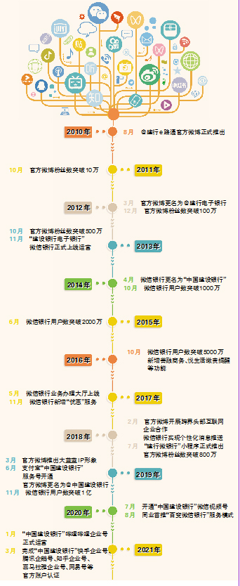 目前,建行已开通“中国建设银行”官方微博、微信银行、哔哩哔哩企业号等主流媒体账号,并正在启动更多头部互联网平台运营筹备,全面发力新媒体运营,致力于打造更有温度的建行新媒体服务名片。