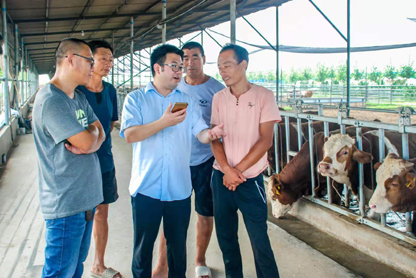 河北省唐山丰南支行客户经理在丰南崔庄户肉牛养殖基地介绍“福牛贷”。