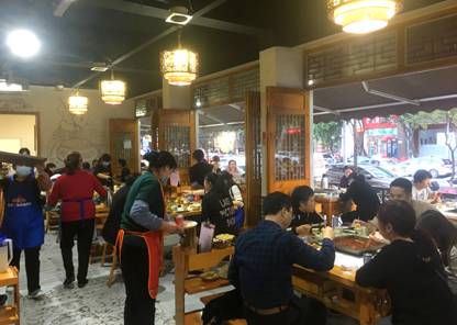 位于四川广元的“再相逢”火锅店在建行普惠信用贷款支持下,挺过了歇业难关,现在生意兴隆,顾客盈门。